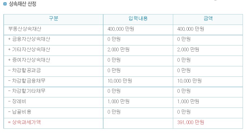주택 외 부동산의 조건을 고려하지 않았기 때문에 상속세 계산기로 산출된 해당 금액을 사용해서는 안되며 참고용으로만 확인하시기 바라겠습니다.