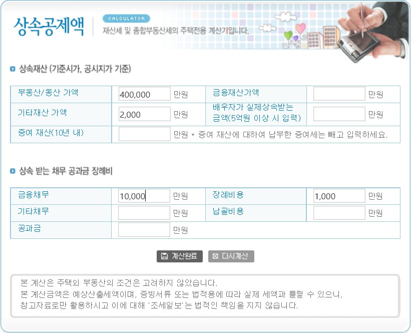 조세일보 상속세 계산기는 본문에 있는 링크에서 들어갈 수 있습니다.