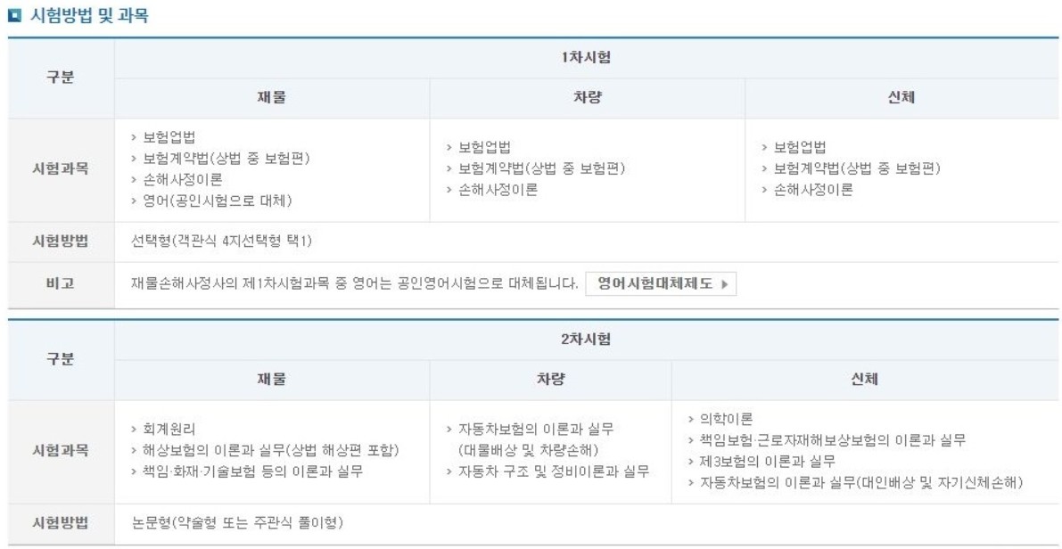 - 시험 과목 : 차량, 재물, 신체