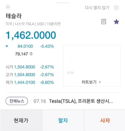 종목에 따라서 지연시간이 다르게 나타나지만 해외 주식은 아무래도 국내 주식 같이 실시간으로 투자하긴 어렵습니다.