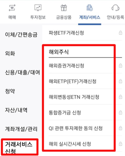 해당 앱은 국내 주식과 해외 주식 모두 거래를 할 수 있는 앱입니다. 다른 앱들처럼 보안 프로그램 같은 복잡한 것을 설치할 필요가 없다는 장점이 있는데요, 다만 해외 주식 거래를 위해서는 해외 증권 거래 신청을 해 줘야 합니다.
