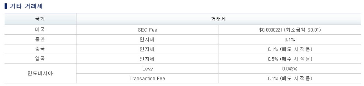 기타 거래세도 나라마다 다르게 결정되는데요, 매도나 매수 시에 적용되는 부분도 있고 퍼센트 별로 측정하는 곳도 있으니 잘 확인하시기 바랍니다.