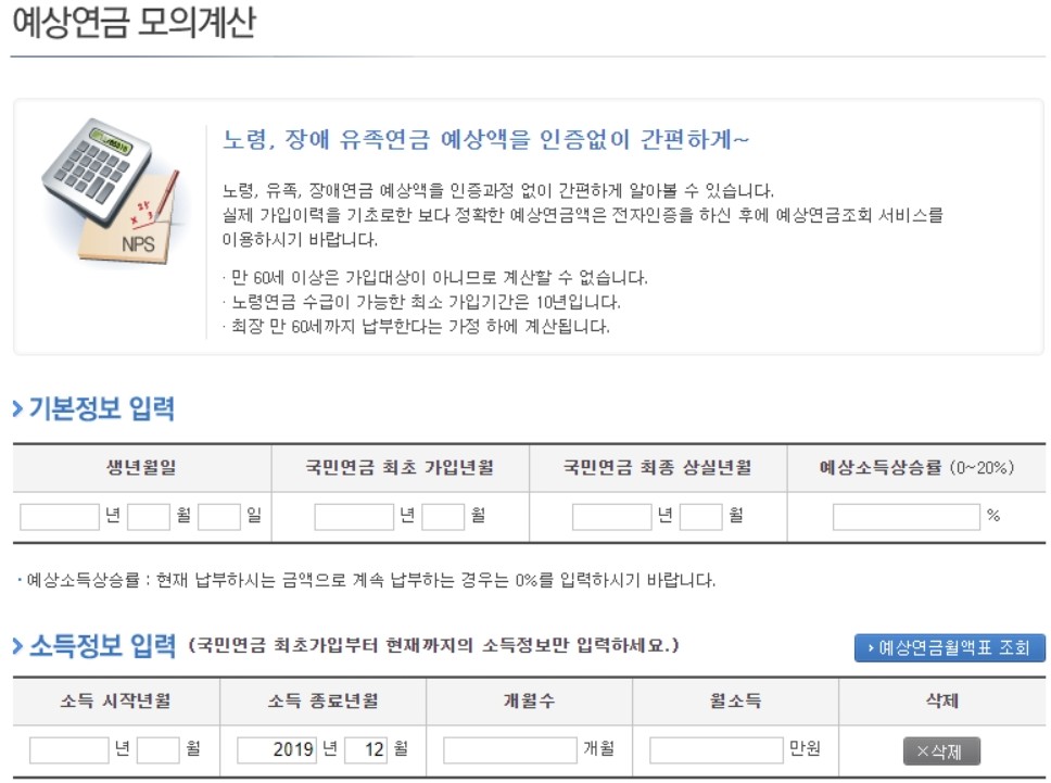 공인 인증서로 국민 연금 수령액을 조회 해 보지 않고 모의 계산과 간단계산을 통해서도 예측할 수 있습니다.
