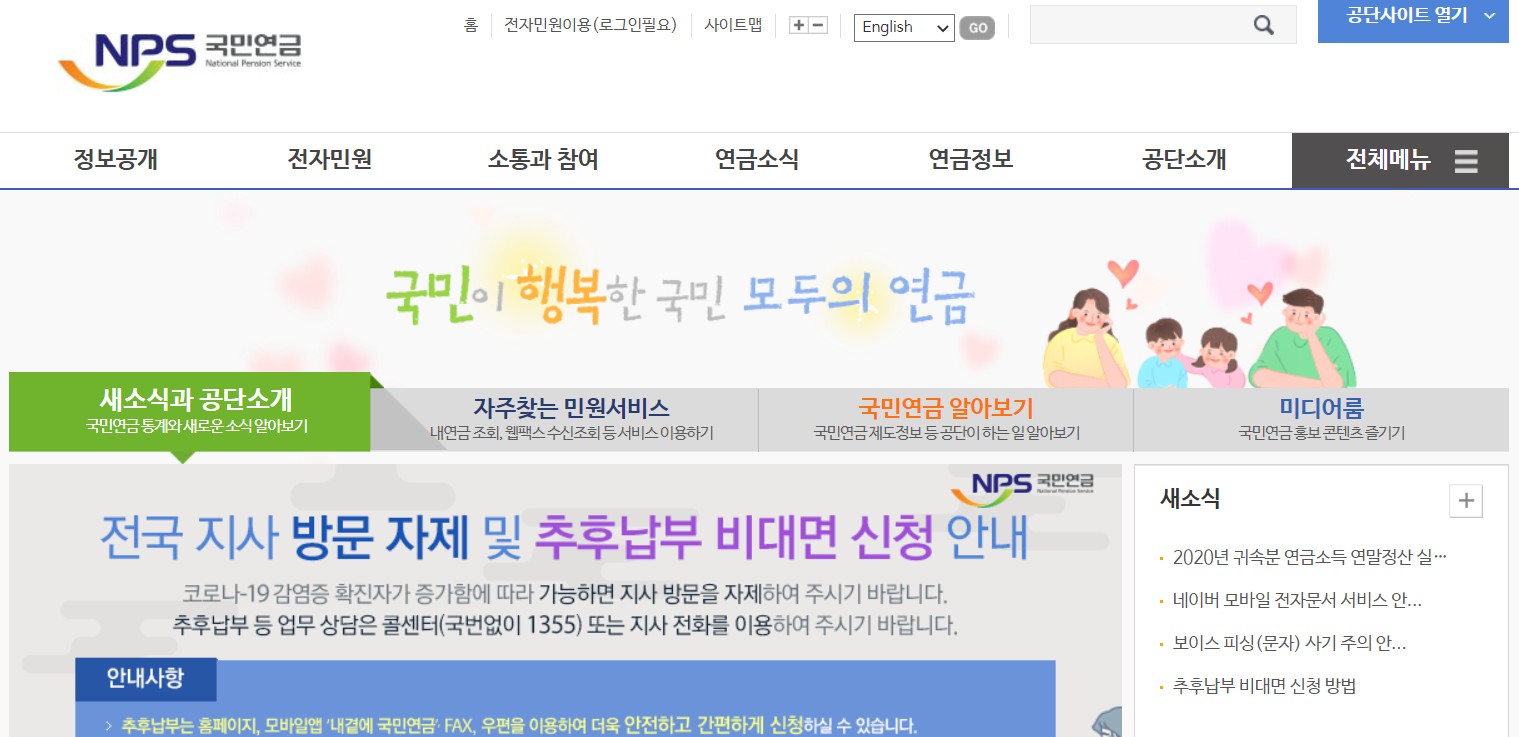 예상 수령액을 알아보기 위해서는 먼저 국민연금 홈페이지에 들어가야 합니다.