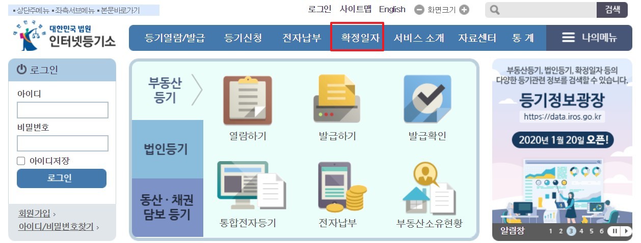 먼저 확정일자 확인을 위해서는 대한민국 법원 인터넷 등기소 사이트에 방문해야 합니다.