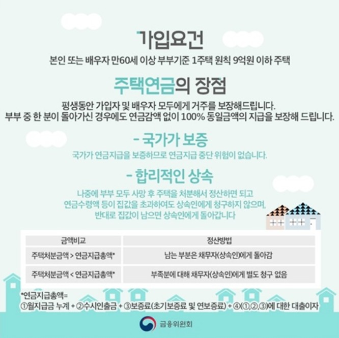 국민연금과 개인연금에 비해 주택연금은 생소하다고 느껴지실 수도 있습니다. 젊을 때 금액을 납부하는 것도 아니니 못들어 보셨을 수도 있죠.