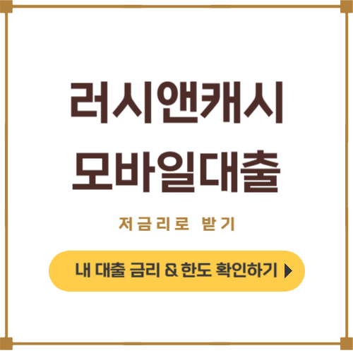 러시앤캐시 모바일대출을 쉽게 저금리로 이용하고 싶다면 꼭 링크를 통해 확인하세요. 러시앤캐시 철수 이슈로 인해 다른 상품들도 정리했는데요, 상품에 따라 월별 한도 소진시 판매가 중지되기도 하니 빠른 신청을 권해드립니다.
